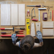 Kids at Work's extensive and carefully curated range of tools and DIY kits allow children to take their first steps in the areas of carving and woodworking, as well as handling general tools. Real tools, made especially for kids’ hands.